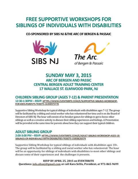 The Arc of Bergen & Passaic: Supportive Sibling Workshop for Children & Parents