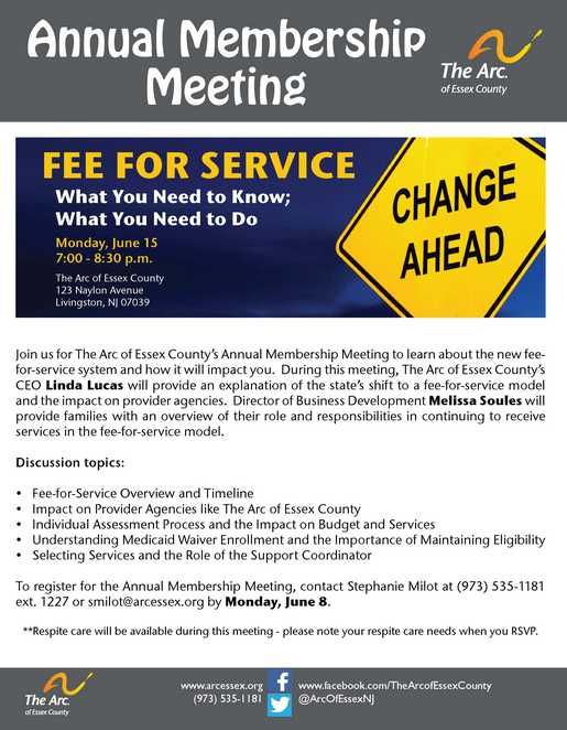 The Arc of Essex County: Annual Membership Meeting - FEE FOR SERVICE What You Need to Know; What You Need to Do