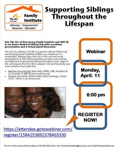 Join The Arc of New Jersey Family Institute and SIBS NJ as we honor National Sibling Day with a webinar presentation and a virtual panel discussion.