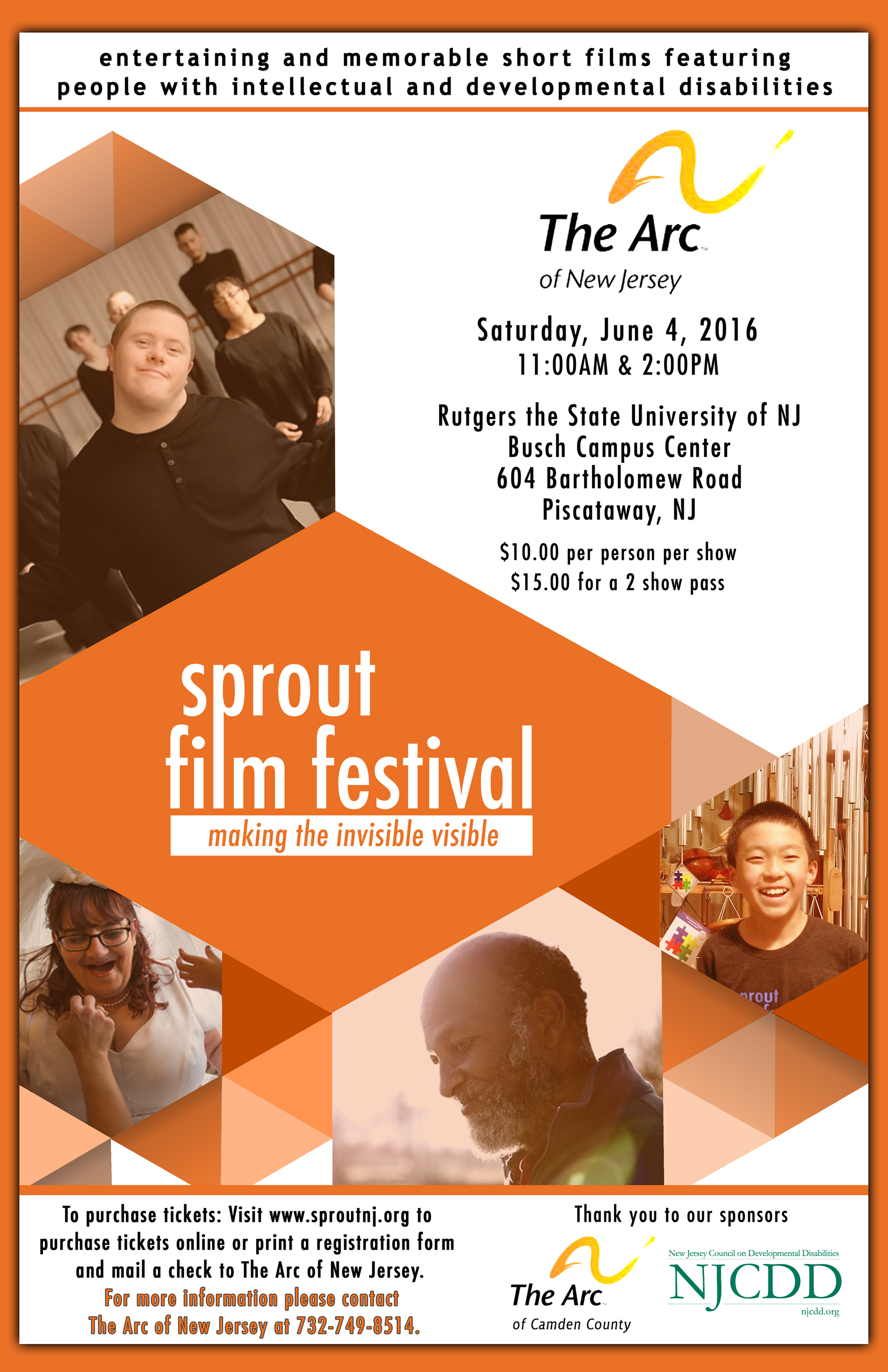 The Arc of New Jersey is thrilled to announce that we are hosting our first Sprout Film Festival on Saturday, June 4th in Piscataway, New Jersey. The Sprout Film Festival offers people with intellectual and developmental disabilities the opportunity to be on screen and behind the scenes in a wide range of video projects. Each film has a varied run-time and the genres can alternate from comedy and drama to documentary-style. The goal of the Festival is to break down stereotypes and offer accurate portrayals of people with disabilities. The event will take place on the Busch Campus at Rutgers University and the auditorium is accessible for people with disabilities