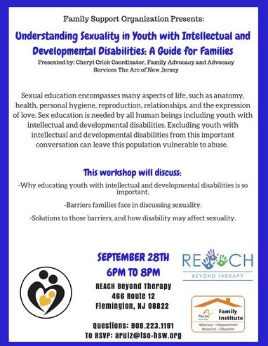 Family Support Organization Presents: Understanding Sexuality in Youth with Intellectual and Developmental Disabilities: A Guide for Families" Presented by: Cheryl Crick Coordinator, Family Advocacy and Advocacy Services The Arc of New Jersey.