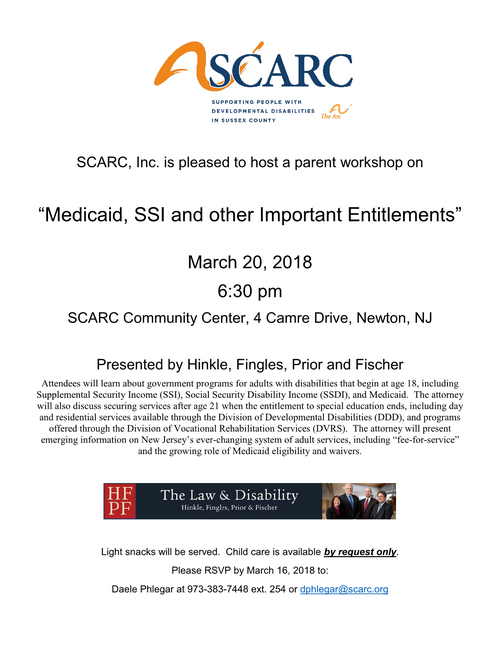 Attendees will learn about government programs for adults with disabilities that begin at age 18, including Supplemental Security Income (SSI), Social Security Disability Income (SSDI), and Medicaid. The attorney will also discuss securing services after age 21 when the entitlement to special education ends, including day and residential services available through the Division of Developmental Disabilities (DDD), and programs offered through the Division of Vocational Rehabilitation Services (DVRS). The attorney will present emerging information on New Jersey’s ever-changing system of adult services, including “fee-for-service” and the growing role of Medicaid eligibility and waivers.